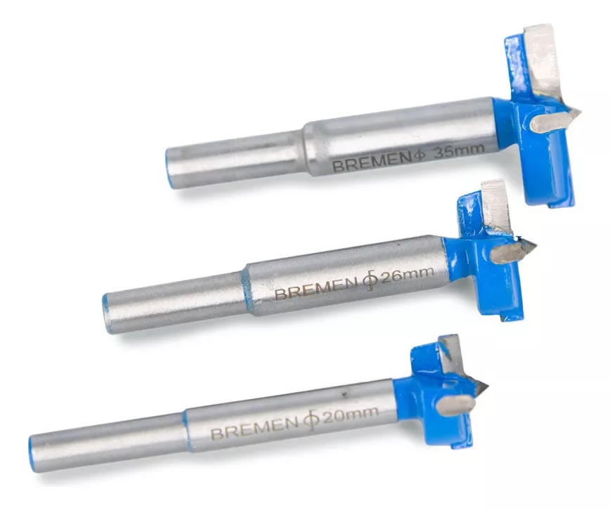 | Cuentan con una punta central que funciona como guía, asegurando una perforación precisa y sin posibilidades de oscilamiento durante su uso. | Poseen filos especialmente diseñados para realizar orificios redondos que dejan plano el fondo de la pieza perforada. | Las mechas cuentan con dos filos de corte principales y dos periféricos, los cuales son de Carburo de Tungsteno, al igual que la punta guía.