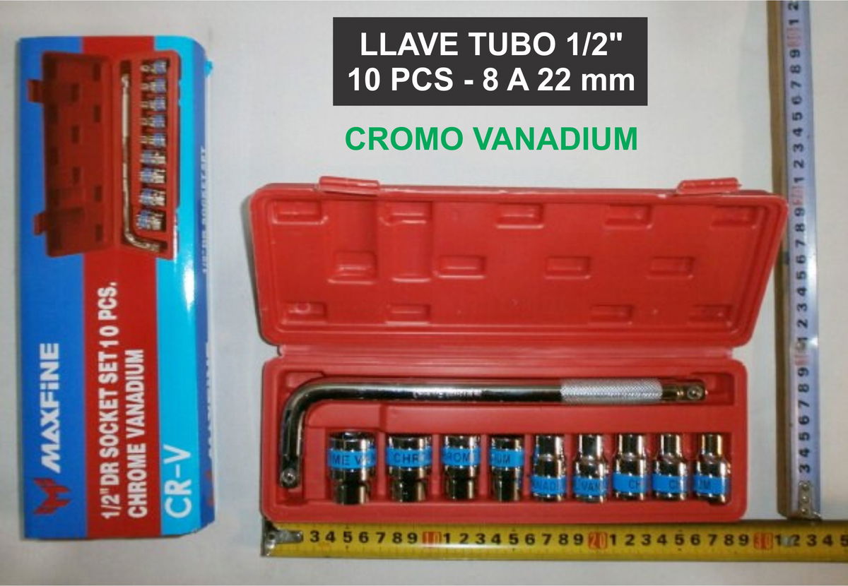 SET DE LLAVE TUBO 1/2 10PCS 8 A 22MM CROMO